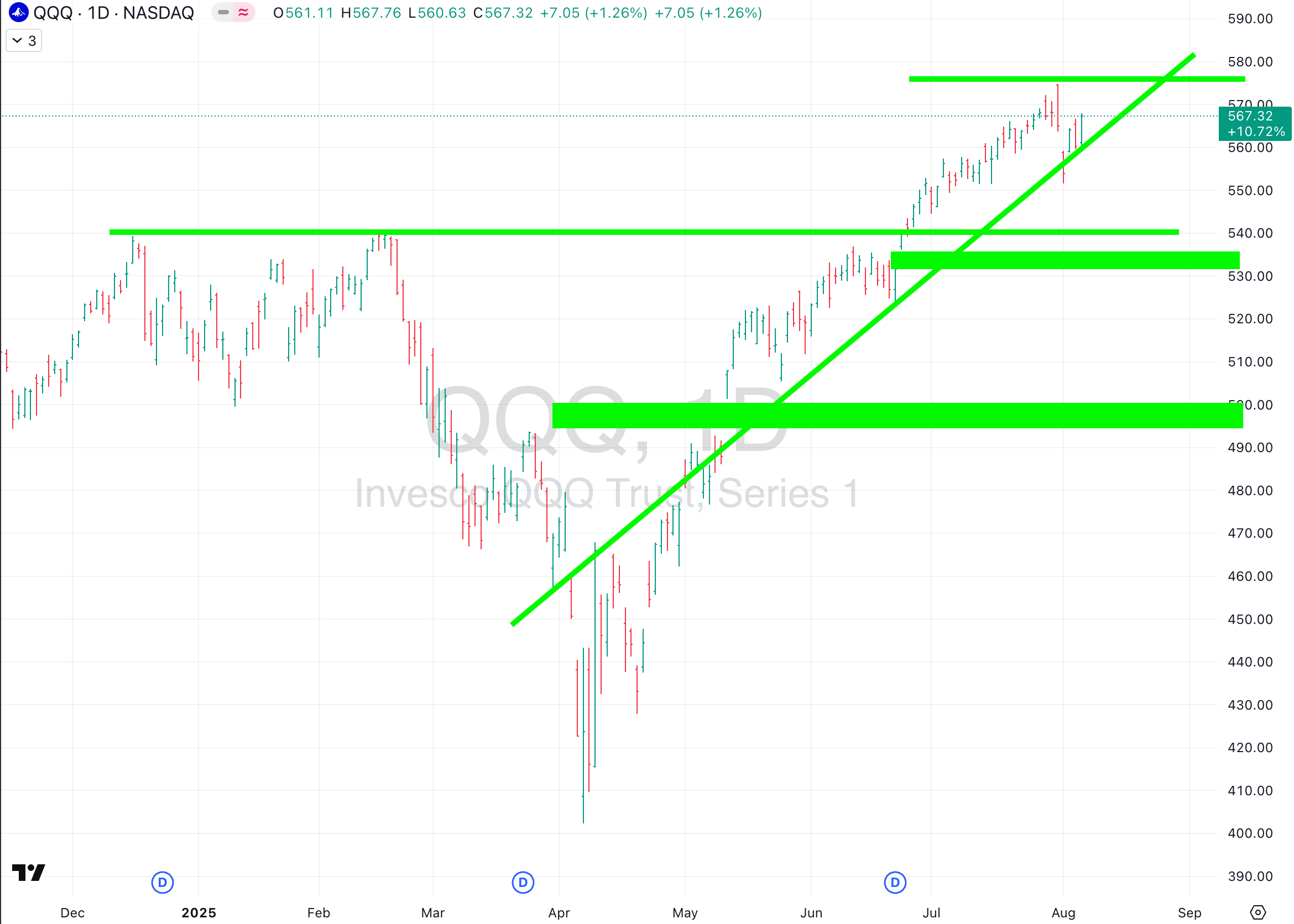 The Mag 7 are the key drivers of QQQ and SPY. All are sitting at interesting spots.
