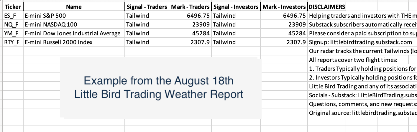Reports exclusive to subscribers who financially support Little Bird Trading