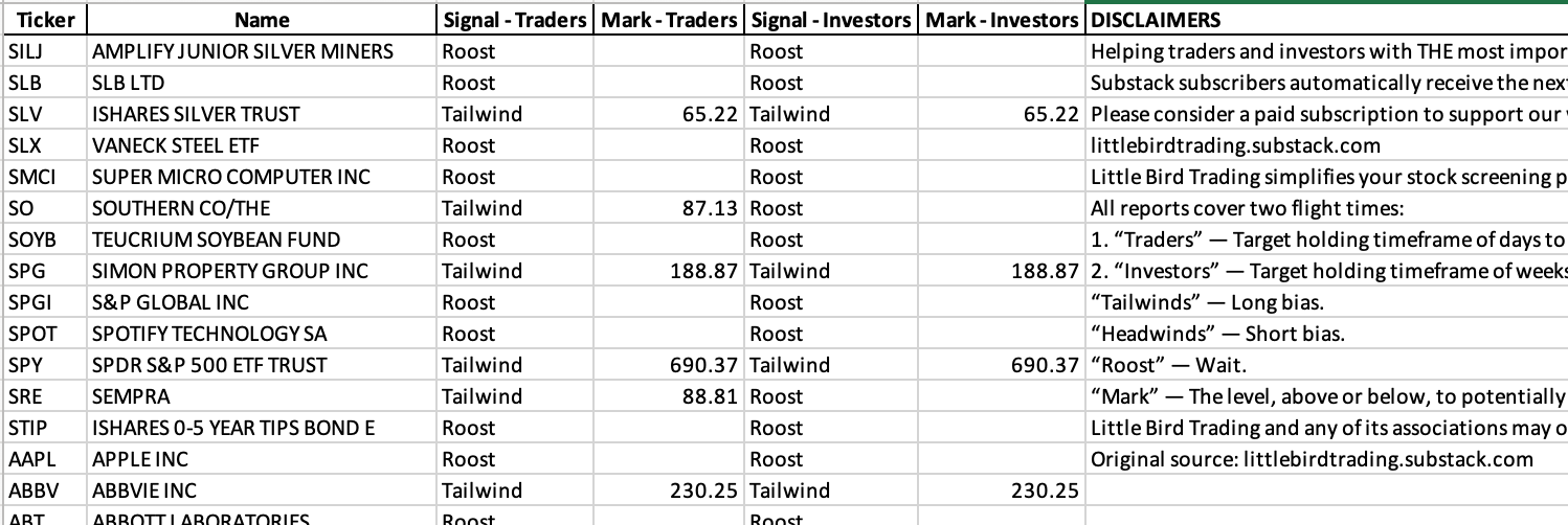 Reports exclusive to subscribers who financially support Little Bird Trading