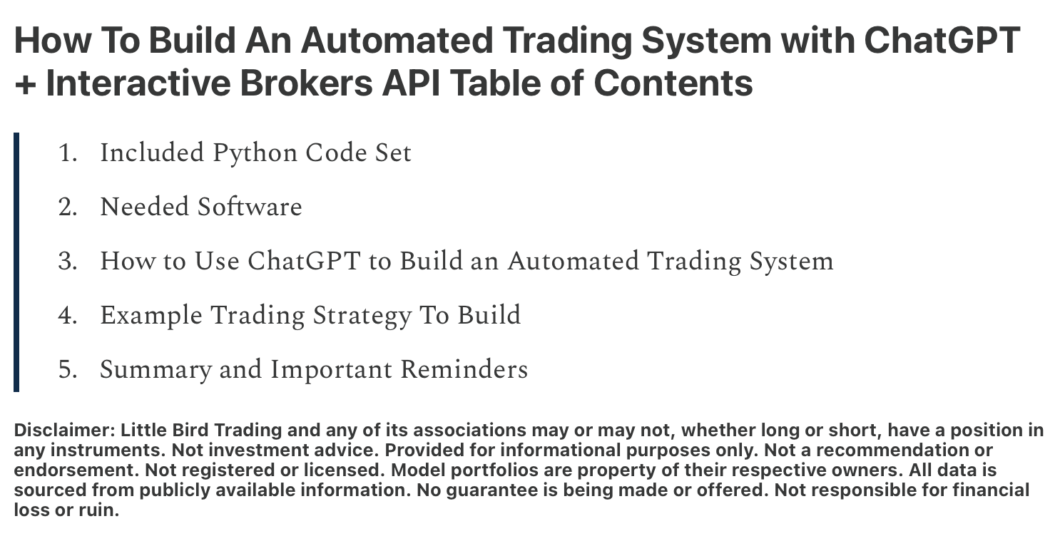 How To Build An Automated Trading System with ChatGPT and the Interactive Brokers (IBKR) API — Includes python code, screenshots, and steps for building your first automated trading program.