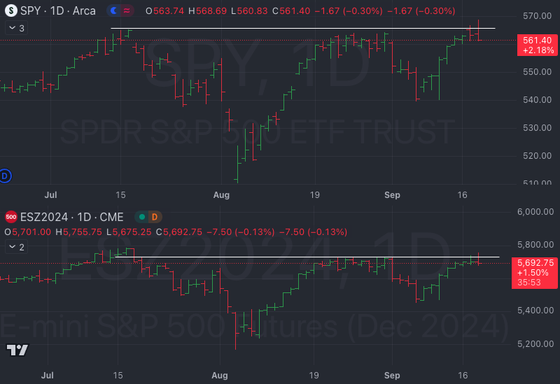 Today $SPY and $ES_F printed an even newer/higher ATH only to close back within the range yet again.